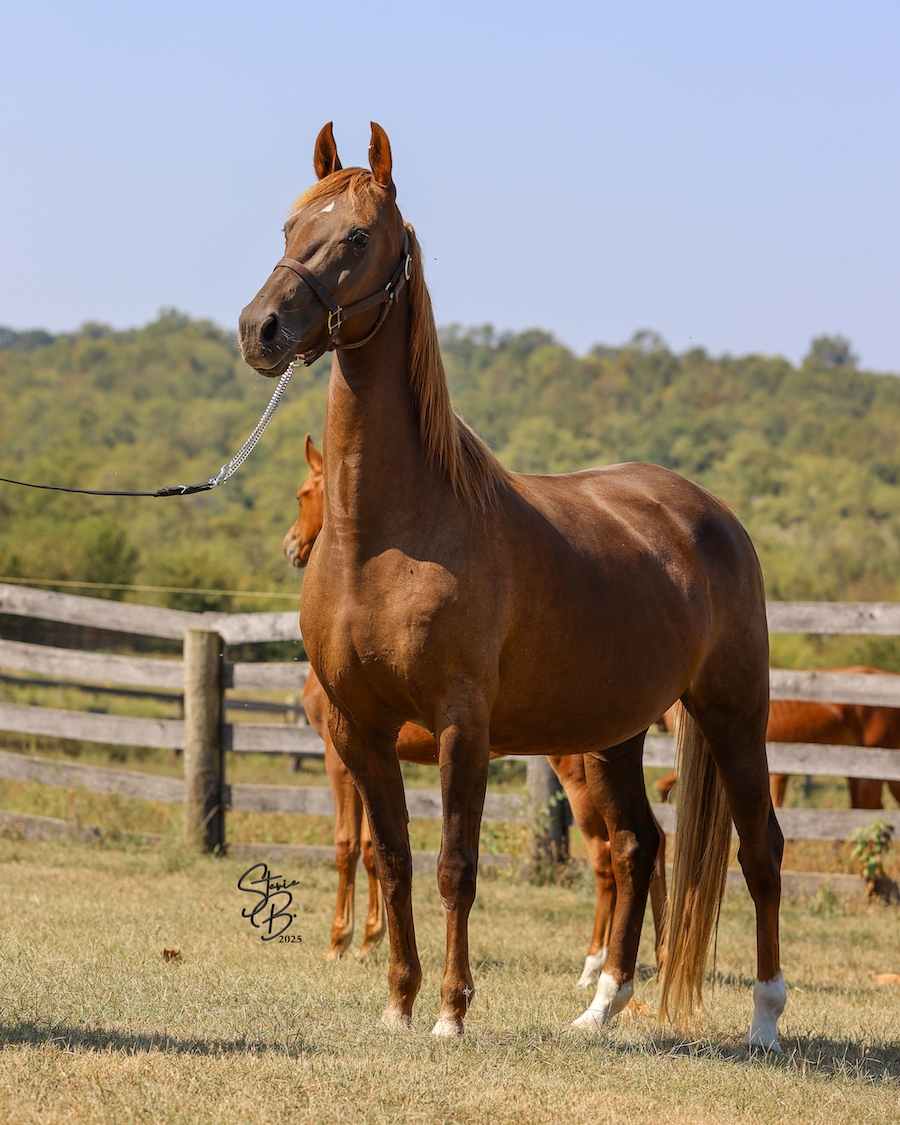 CONSIGNOR'S STATEMENT: Windermere's Blue Queen is a beautiful broodmare by RWCC MBA's Sir William Blue. Her dam, Fox It To Me, is a full sister to Starheart's Whisper (dam of RWCC CHWorld Turning), CHRecoup, etc. Her second dam, Coup, is a full sister to WC CHMagna Cum Laude (second dam of WCC CHTop Asset and WCC Smart Fortune), and her third dam, Daybreak GSM, is a full sister to WCC CHSet The Style and Mountjoy's Tasty Tart (dam of WC CHTasty Charm), and a half sister to the noted five-gaited mare of her era WC CHStonewall's Sound Of Music. Her fourth dam is Hall of Fame broodmare A Perfect Mate To A Perfect Jewel. She has a beautiful filly at her side by WCC sire WC (SA) Calif' First Night Out ([SA] Enja Hell-Of-A-Nite x [SA] Majel's Autumn Love by [SA] Kareeberg Bonzale) that is eligible for the 2028 All American Cup Three-Year-Old class and the Indiana Futurity.