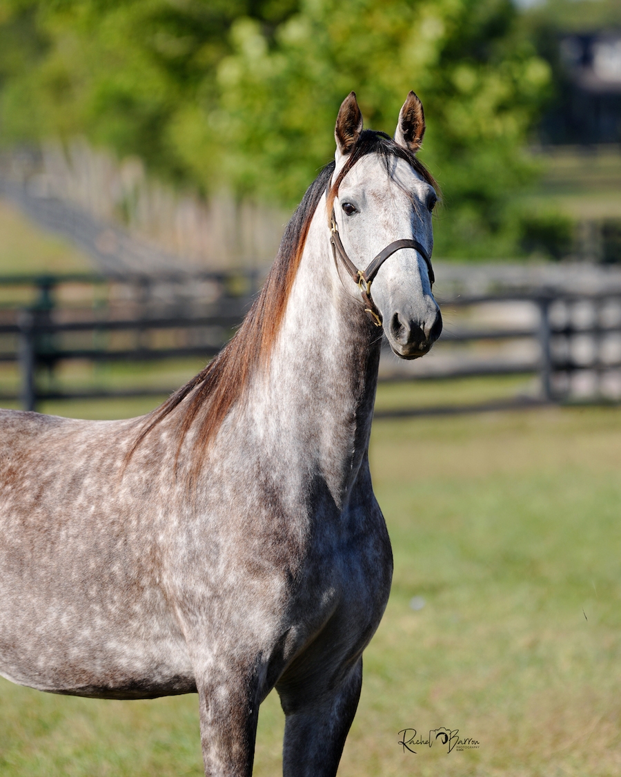 CONSIGNOR'S STATEMENT: The Princess Jacqueline should be a exceptional broodmare. This mare is by WGC sire WC Fort Chiswell's Royal Kiss, sire of WGC Clever Girl, WCC CHThe Northern Crown, WCC Man Crush Monday, WC Source Code, etc. She is a half sister to WC Johnny Boy and WC The Divine Feminine (both gray) and her dam is the well known gray gaited mare WC CHDivine Asset. Her third dam is the winning three-gaited sensation of her era RWC CHVenus In Gray. This mares first, second, third and fourth dams are gray and she has multiple winning five-gaited horses on both sides of her pedigree. If you are looking for color, quality, gameness and go forward - The Pirncess Jacqueline is bred to produce that for you!