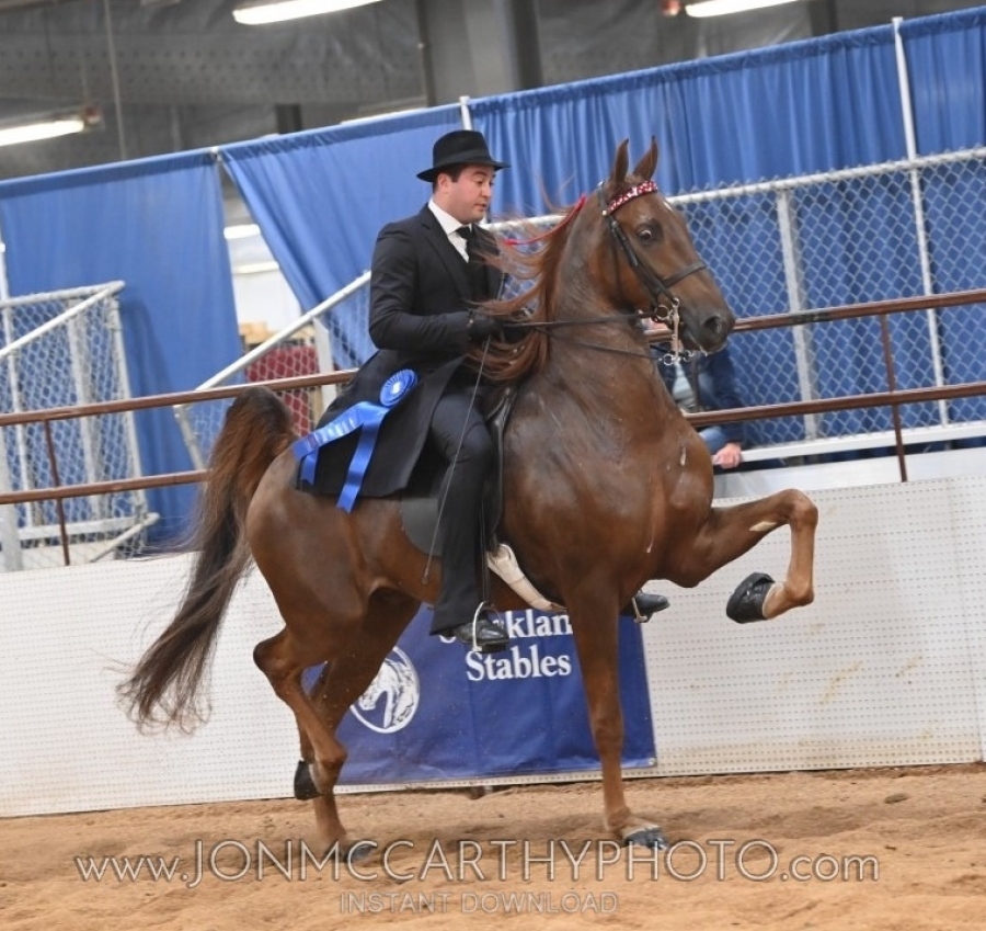 CONSIGNOR'S STATEMENT: Stonehedge Sensational Kiss is a 4 year old gelding. Been shown in pleasure, has started patterns, thinks the best, and has a show horse attitude! Wins or Reserve at Midwest Charity, All American Horse Classic, Madison Classic, and Cleveland Tri-State Charity. Ready to carry your rider to the winners circle!