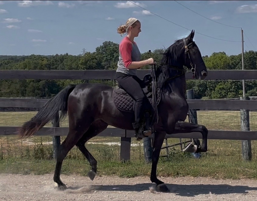 CONSIGNOR'S STATEMENT: This striking two-year-old filly has been exotic and fiery since the day she came in. With three easy gaits, she is very willing and agreeable. Anticipation can't put her head in a bad spot and has only worn a smooth snaffle. She jogs well, stands to hook and to mount. This very good-thinking filly could finish out in any division. She should be easy to rack and she keeps getting stronger.