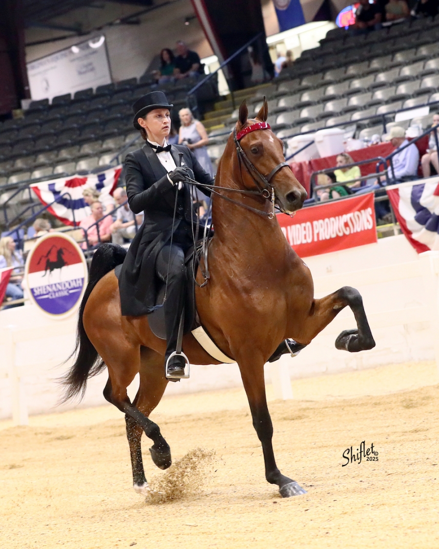 CONSIGNOR'S STATEMENT: Walterway's Fortunate is a beautiful bay walk trot mare. Her show career is off to a great start with wins at Shenandoah Classic and Asheville Summer Fun and a top ribbon at the Kentucky State Fair. Fortunate thinks the very best and will soon be ready for an amateur or juvenile rider. By recently deceased WGC sire Mountainview's Heir To Fortune, her dam, Walterway's Me First, is a half sister to WC Walterway's Crack Me Up and WC Walterway's Why Not Me. This wonderful mare is top notch and ready to take you to the top.