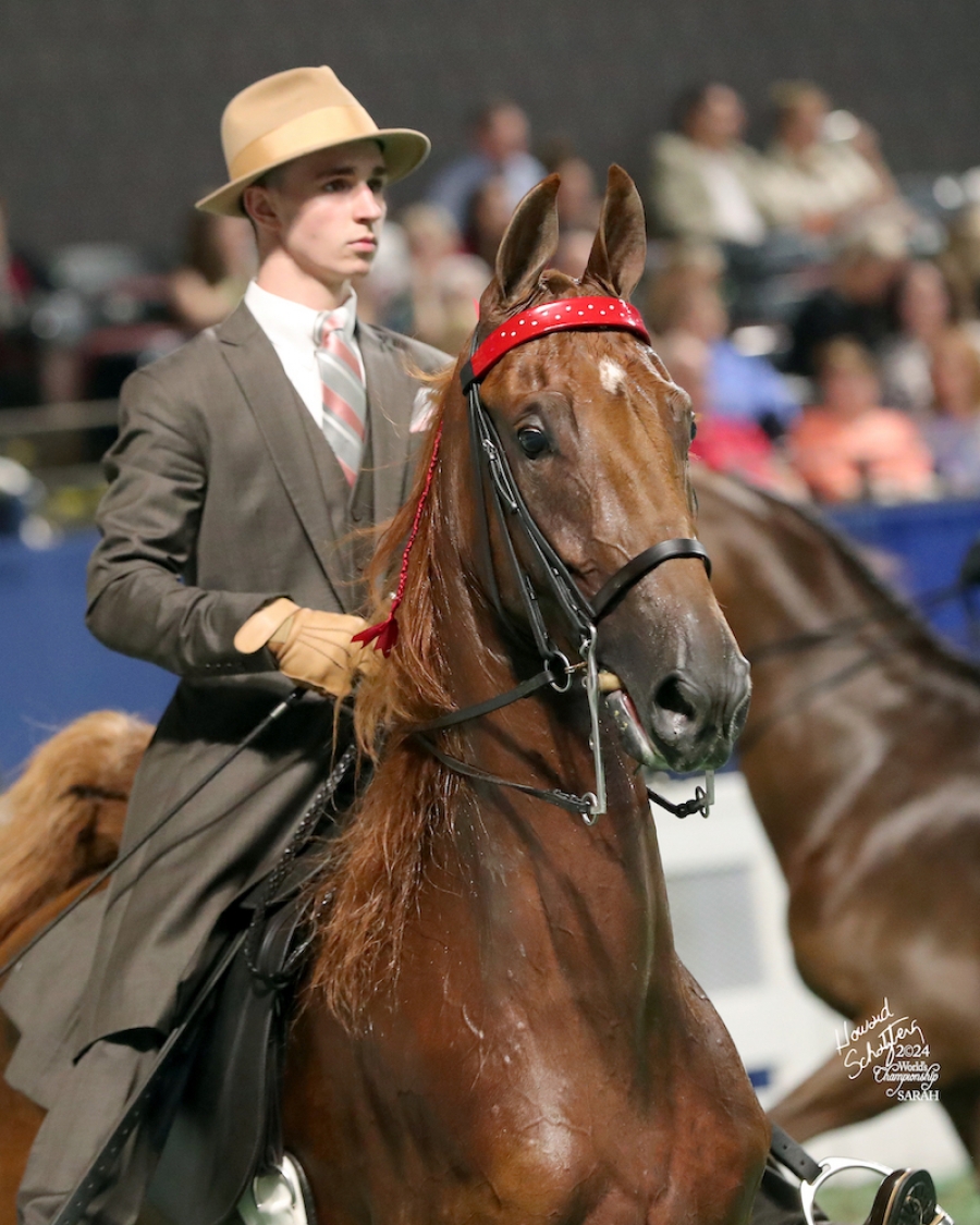 CONSIGNOR'S STATEMENT: All preliminary training for this mare has been completed. The well-bred and refined Well Look At Me is suitable for various pleasure divisions and riders, including amateurs and juveniles. Currently four-years-old, she is concluding her second full season of showing across Ohio, Kentucky, and Tennessee. The mare demonstrates a strong jog and maintains a consistent work ethic. In 2024, she competed in five-gaited events; in 2025, she has transitioned to three-gaited competitions. She works confidently in a full bridle and exhibits a controlled, soft lope. This mare presents an excellent opportunity for advancement in the show ring in 2026.