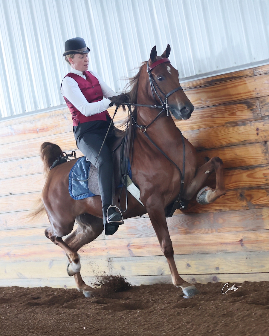 CONSIGNOR'S STATEMENT: She's THAT girl, one of a kind, one you don't want to miss. Regal's Adele is everything you want in a two-year-old prospect. She rides and jogs equally well and has a big show horse attitude. She is by WCC sire WC I'm First and her dam, Dell'Era, is a half sister to WC Regal's Berry Blue, WC CH-EQSugar Fund, RWC I'm A Sugar Shakerh. Her second dam is WCC CHCallaway's Sugar Plum (BHF). With her top pedigree, snorty, high trot and gorgeous look, you will not go wrong with this filly! She is an investors dream!